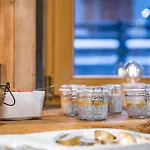 Οι παροχές περιλαμβάνουν χώρος αποθήκευσης σκι, ενοικίαση σκι και πάσο σκι. Οι πελάτες μπορούν να χαλαρώσουν σε κέντρο ευεξίας που προσφέρονται στις εγκαταστάσεις.
